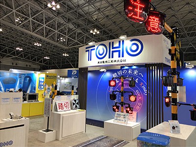 「Safety & Ecology & Kindly」をテーマに、 CUD認証を取得した「踏切警報灯(全方向形)ecoK」などecoKシリーズの発表をはじめ、 踏切状態監視装置やiOS対応のVAM解析装置などの展示を行った。